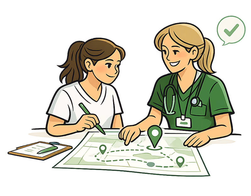 אחרי שנכיר, נתחיל לחשוב יחד איך נכון לך להתקדם — בקצב שלך, מתוך החוזקות שלך, ובחיבור למה שמתאים לך בתוך עולם האחיות.